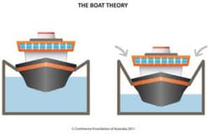 Ok, so as I said above, a prolapse occurs when the muscles and ligaments in the pelvis weaken and can’t hold the pelvic organs in place. I always like this diagram. Its like a boat in harbour, sitting on top of the water due to the strong lines that hold them in place. However, when they weaken or loosen off the boat may drop lower in the water.
